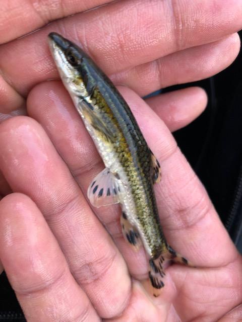 크기는 몸길이로 보면 10∼15cm 정도이다. 몸은 가늘고 길며 원통형으로 생겼고 머리는 길고 주둥이 끝은 뾰족해서 돌고래와 비슷하게 생겼다. 머리와 몸통은 모두 옆으로 납작하게 생겼다. 입은 작고 주둥이 끝의 아랫면에 말굽 모양으로 생겨 밑에서 보면 위턱이 원형이다. 아래턱이 위턱보다 짧은데 입 주위에 수염은 없다. 비교적 큰 비늘을 가지고 있으며, 측선은 직선으로 뻗어 있는데 비늘수는 41개이다. 등지느러미는 배지느러미보다 약간 앞에 기점이 있고 바깥 가장자리는 밖으로 둥근 형태이다. 가슴지느러미는 가늘고 길게 생겼으며, 아가미뚜껑 바로 뒤에 붙어있는 형태이다. 배지느러미 1쌍은 등지느러미보다 뒤에 붙어 있는데 좀 작고 바깥 가장자리는 둥글다. 꼬리지느러미는 중앙이 안쪽으로 깊이 파인 형태로 위아래 조각의 크기나 모양이 비슷하다.