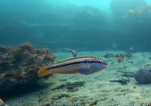 분포지역은 우리나라와 일본, 타이완, 중국, 필리핀을 지나는 서부 태평양 지역에 서식하고 있다. 몸의 크기는 보통 25cm 정도이며 최대 34cm까지 자란다고 한다. 몸이 앞뒤로 길고 옆으로 납작하다. 눈은 몸에 비해 상대적으로 작으며 주둥이가 길고 뾰족하다. 등지느러미가 몸 뒤쪽까지 길게 연결되어 있고 꼬리지느러미는 둥근 모양이다. 몸 색깔은 암수에 따라 차이가 있는데, 수컷은 등 쪽이 푸른빛을 띠는 청록색이고 배 쪽이 황록색인 반면, 암컷은 전체적으로 붉은빛이 강하고 등과 배 쪽 모두 황록색을 띤다. 수컷은 가슴지느러미 끝에 큰 검은색 반점이 있어 암컷과 구별되며, 암컷의 경우 몸의 옆면을 따라 기다란 적갈색 띠가 있다.