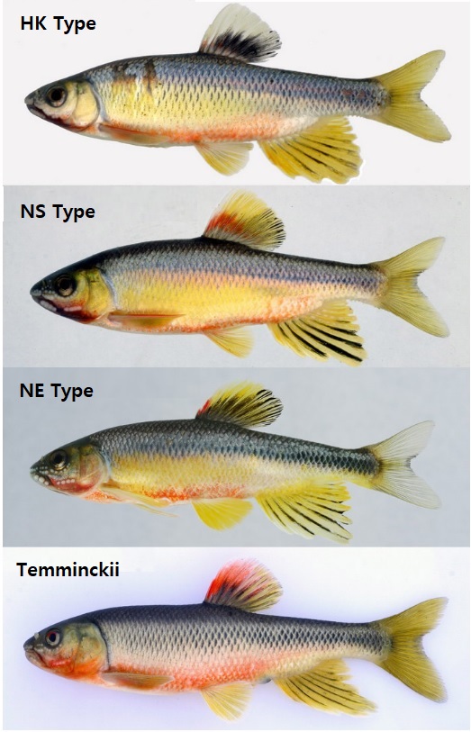 2005년까지 갈겨니와 같은 한 종으로 불렸으나, 옆줄 위 비늘 수와 혼인색 [번식기에 현저하게 나타나는 체색을 갖는 성징] 등 몇 가지 특징을 근거로 신종으로 분류되었다. 무주군에서 참갈겨니는 유사종인 피라미와 동일하게 불리며, 형태적으로 구분은 하지만 명칭에서는 같이 쓰인다. HK type는 주로 임진강, 한강, 금강에 사는 형태이고 , NS type은 낙동강과 섬진강에 사는 것들 , NE type은 낙동강과 강원남부 이남의 동해안의 하천에 주로 사는 것들의 형태입니다.