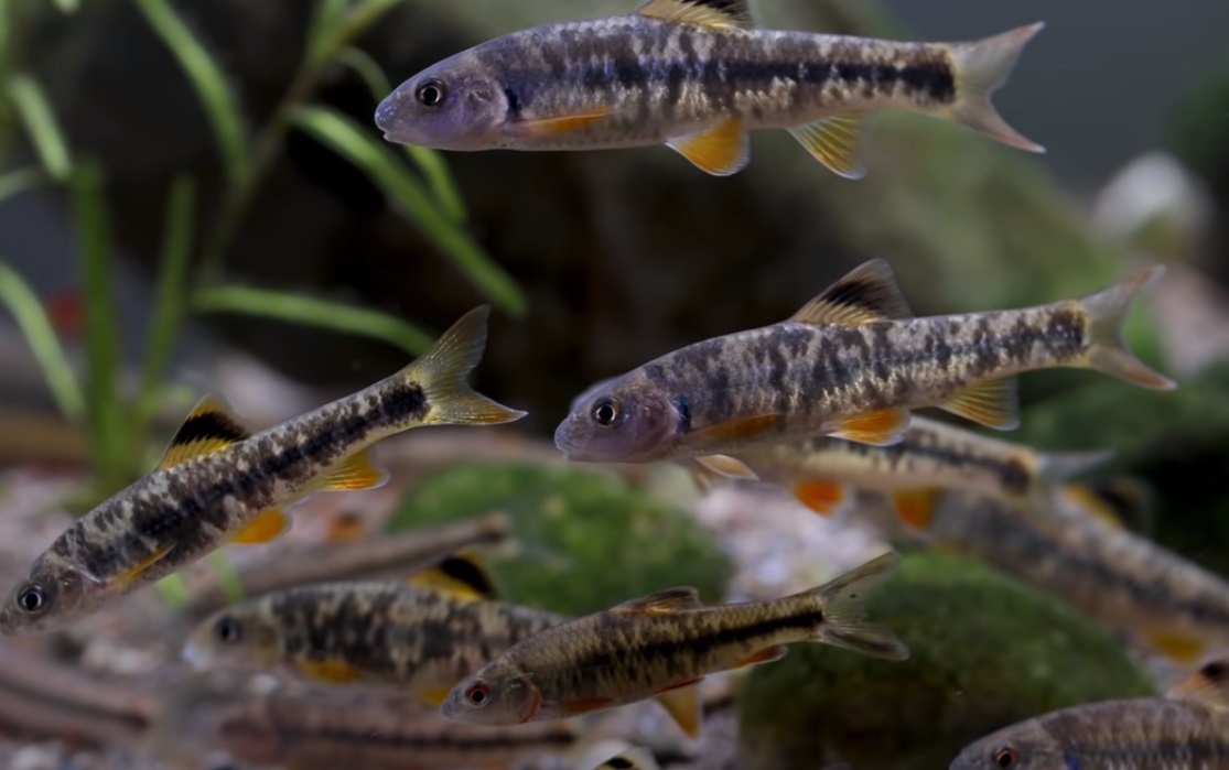 번식기의 다 자란 성체의 수컷은 지느러미마다 뚜렷한 남흑색을 띠는데 각 기부와 가장자리에 연한 부분이 있다. 산란기의 암컷은 산란관을 가지며 수컷은 주둥이 주변에 미소한 추성이 나타난다. 몸의 등 쪽은 진한 녹갈색이고, 배 쪽은 회백이다. 몸의 옆구리 중앙에는 폭이 넓은 암갈색의 줄무늬가 있는데, 어린것은 뚜렷하지만 큰 개체는 검은색 반점이 있고, 등지느러미 기조 중앙부에는 폭이 넓은 흑색 띠가 있으나, 다른 지느러미에는 없다. 산란시기에 수컷은 등, 가슴, 뒷지느러미가 각각 선홍색을 띠며, 꼬리지느러미 기조의 아랫부분에도 선홍색을 한다. 산란기는 4∼6월로 이 시기에 암컷은 산란관을 길게 내어 담수산 이매패의 새강에 산란을 한다. 이때 암수 유무는 산란관과 혼인색으로 구분한다. 먹이로는 수생곤충·유충·실지렁이 등을 잡아먹는다. 알은 조개 속에서 부화하고 부화한 새끼는 조개 밖으로 헤엄쳐 나온다.