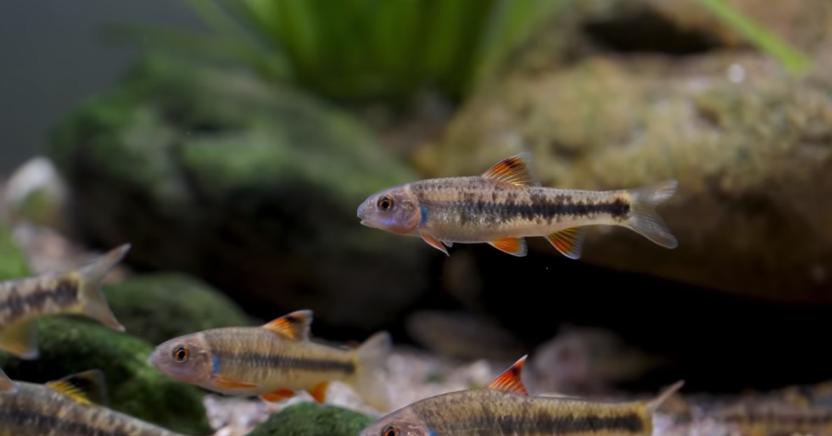 번식기의 다 자란 성체의 수컷은 지느러미마다 뚜렷한 남흑색을 띠는데 각 기부와 가장자리에 연한 부분이 있다. 산란기의 암컷은 산란관을 가지며 수컷은 주둥이 주변에 미소한 추성이 나타난다. 몸의 등 쪽은 진한 녹갈색이고, 배 쪽은 회백이다. 몸의 옆구리 중앙에는 폭이 넓은 암갈색의 줄무늬가 있는데, 어린것은 뚜렷하지만 큰 개체는 검은색 반점이 있고, 등지느러미 기조 중앙부에는 폭이 넓은 흑색 띠가 있으나, 다른 지느러미에는 없다. 산란시기에 수컷은 등, 가슴, 뒷지느러미가 각각 선홍색을 띠며, 꼬리지느러미 기조의 아랫부분에도 선홍색을 한다. 산란기는 4∼6월로 이 시기에 암컷은 산란관을 길게 내어 담수산 이매패의 새강에 산란을 한다. 이때 암수 유무는 산란관과 혼인색으로 구분한다. 먹이로는 수생곤충·유충·실지렁이 등을 잡아먹는다. 알은 조개 속에서 부화하고 부화한 새끼는 조개 밖으로 헤엄쳐 나온다.