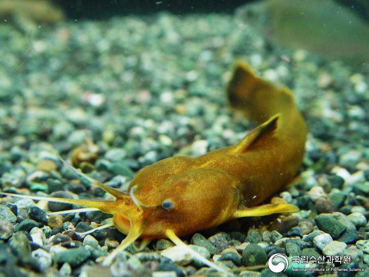 몸의 형태가 메기와 비슷하지만 황갈색의 색깔과 크기가 작다는 것에서 틀리다. 몸의 크기는 14~15cm 정도이며 색깔은 황갈색을 띠고 있는데 등부분은 짙은 형태를 하고 배 부분은 황색을 하고 있다. 몸은 전체적으로 가늘고 길게 생겼으며, 머리는 위아래로 납작하며 몸 뒤쪽으로 갈수록 옆으로 납작한 형태를 하고있다. 눈은 작고 피막으로 덮여 있으며 머리의 앞쪽에 위치해 있다. 몸에는 비늘이 없다. 주둥이가 납작하고 위턱과 아래턱 길이가 비슷하다. 옆으로 긴 형태의 입을 가지고 있고 입안에는 이빨이 있으며, 입 주변에는 네 쌍의 수염이 달려있다. 가슴지느러미의 가시는 굵고 피부에 덮여 있으며, 그 안 언저리 아래쪽에 1∼3개의 작은 가시가 있다. 등지느러미는 몸의 앞쪽에 치우쳐 나 있다. 등지느러미, 꼬리지느러미, 가슴지느러미의 가장자리는 연하고 안쪽은 어두운 색을 하고 있다.