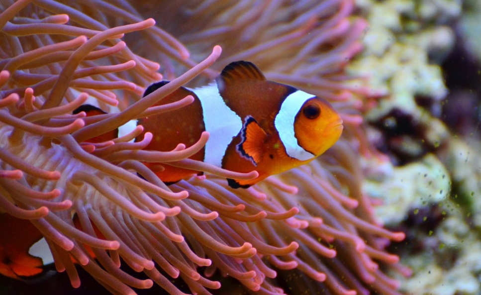 얕은 수심의 해역의 암초 사이에서 살며 말미잘의 독침을 가진 촉수 안에 들어가 공생한다. 보통 하나의 말미잘에 한무리의 흰동가리가 살고 있다. 그런데 왜 강한 독을 지닌 말미잘과 공생할까? 그 이유는 말미잘이 지닌 독을 이용해 외부의 적을 막아 내는데 목적이 있다. 흰동가리는 말미잘의 독에 면역되어 있어 안전하게 생활한다. 반대로 말미잘은 흰동가리에게 보금자리를 제공함으로써 얻는 이득으로 흰동가리를 쫓아오는 바다 동물을 촉수에 있는 자포로 쏘아 잡아먹는다. 그래서 이 공생 관계는 보금자리와 먹이라는 측면에서 서로에게 이득이 된다.